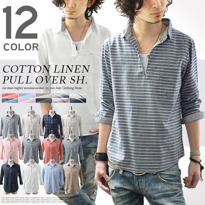 シャツ メンズ リネンシャツ 七分袖 カプリシャツ プルオーバーシャツ フレンチリネン 半袖 麻 スリム ショート丈 カジュアル 000 Ash Yahoo 店 通販 Yahoo ショッピング